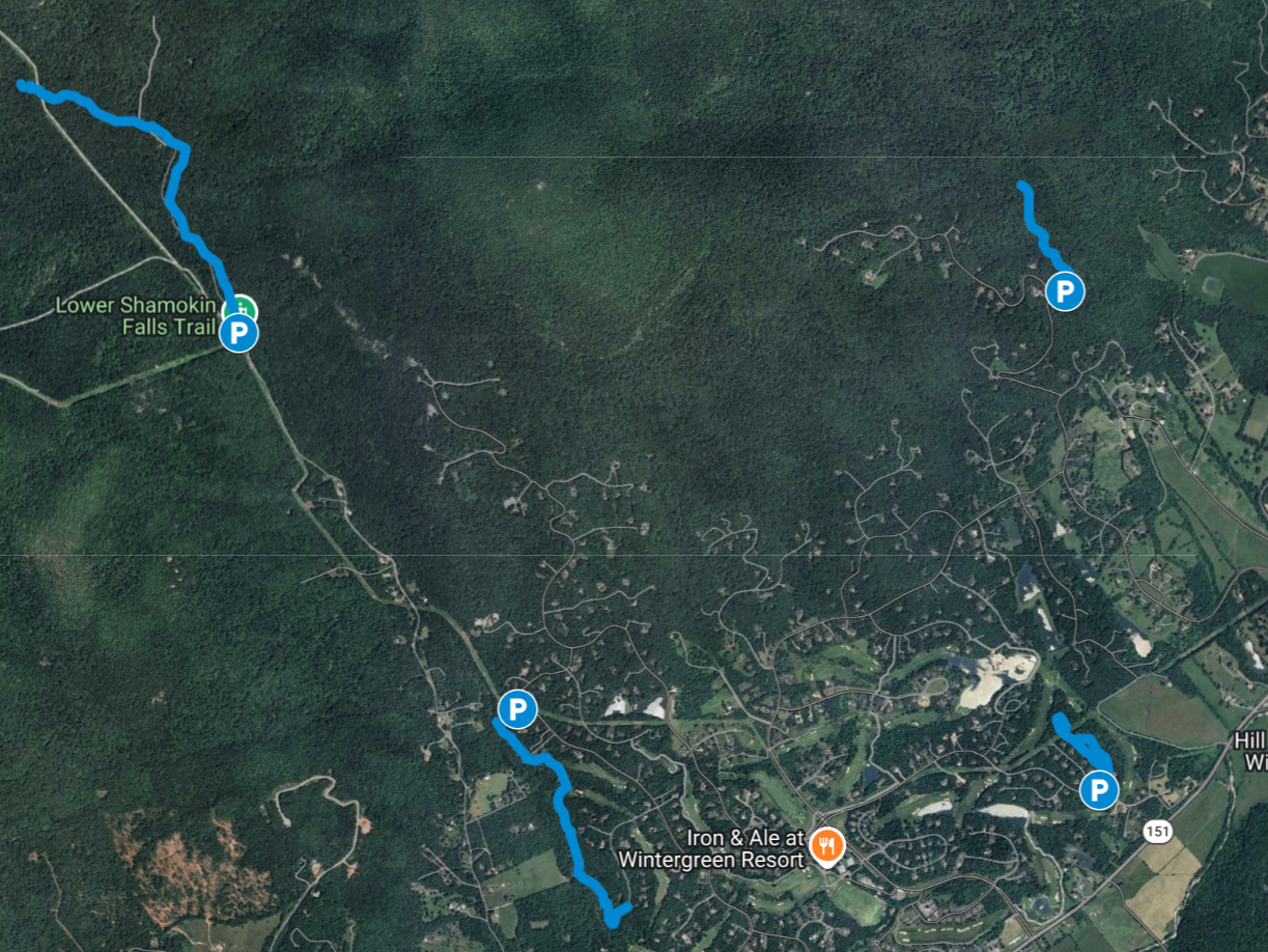 The 12-mile Wintergreen Loop hike encircles Wintergreen Resort (also referred to as Potatopatch Mountain). This hike is extremely challenging using multiple Wintergreen trails. Highlights include stunning views, waterfalls, and beautiful mountain laurel blooms. Challenges consist of steep, rocky sections and slippery spots. Good footwear and a map are essential.